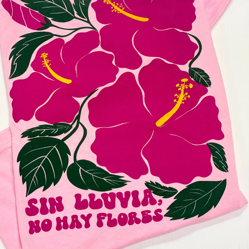 Este moderno crop top presenta un hermoso diseño de amapola, una flor que evoca la belleza silvestre y la tenacidad boricua. Acompañando a la flor, la poderosa frase "Sin Lluvia, No Hay Flores" es un recordatorio de que los desafíos (la "lluvia") son necesarios para el crecimiento y el florecimiento.
