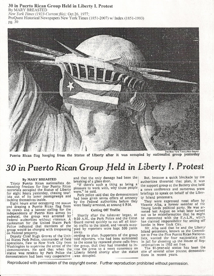 Su objetivo era claro: exigir la independencia de Puerto Rico y la liberación de los presos políticos. Durante esta poderosa protesta, izaron la bandera de Puerto Rico en la corona de la Estatua, convirtiendo el símbolo de la libertad de EE. UU. en un estandarte de la lucha boricua.