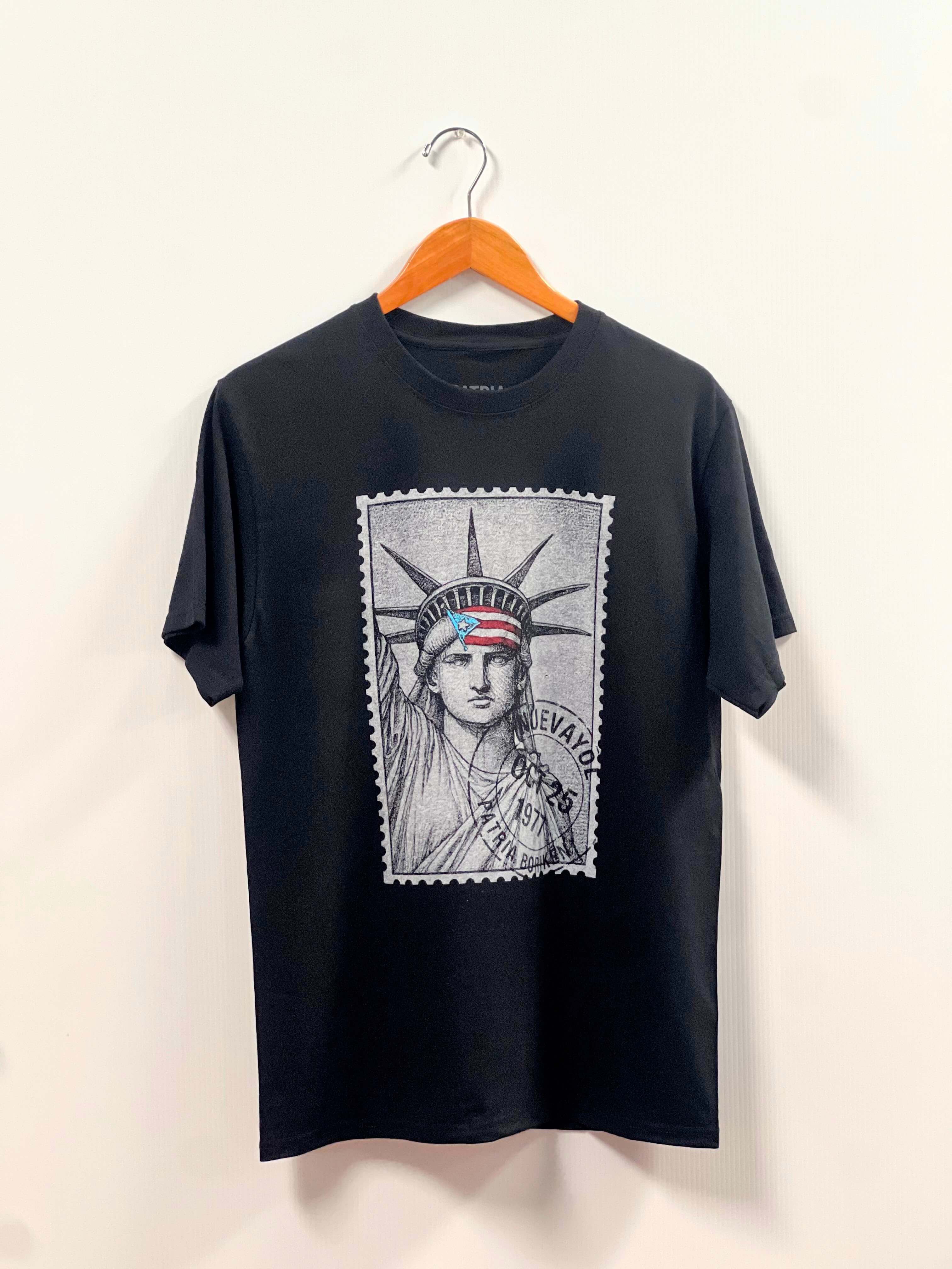 Black Puerto Rico T-shirt – Statue of Liberty with Puerto Rican Flag