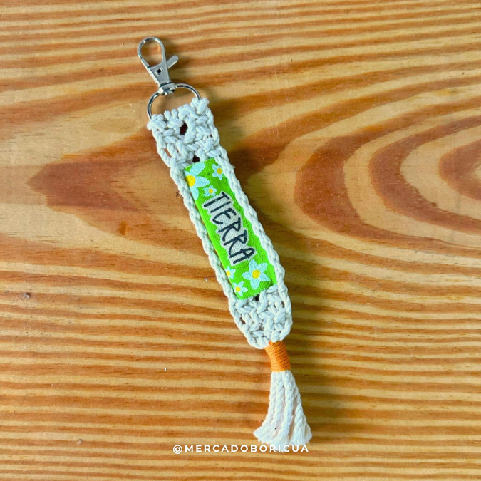 This hand-made and hand-painted macramé keychain represents the Earth element, symbolizing strength and stability. Made with high-quality materials, it's an excellent way to carry a reminder of your connection with nature.