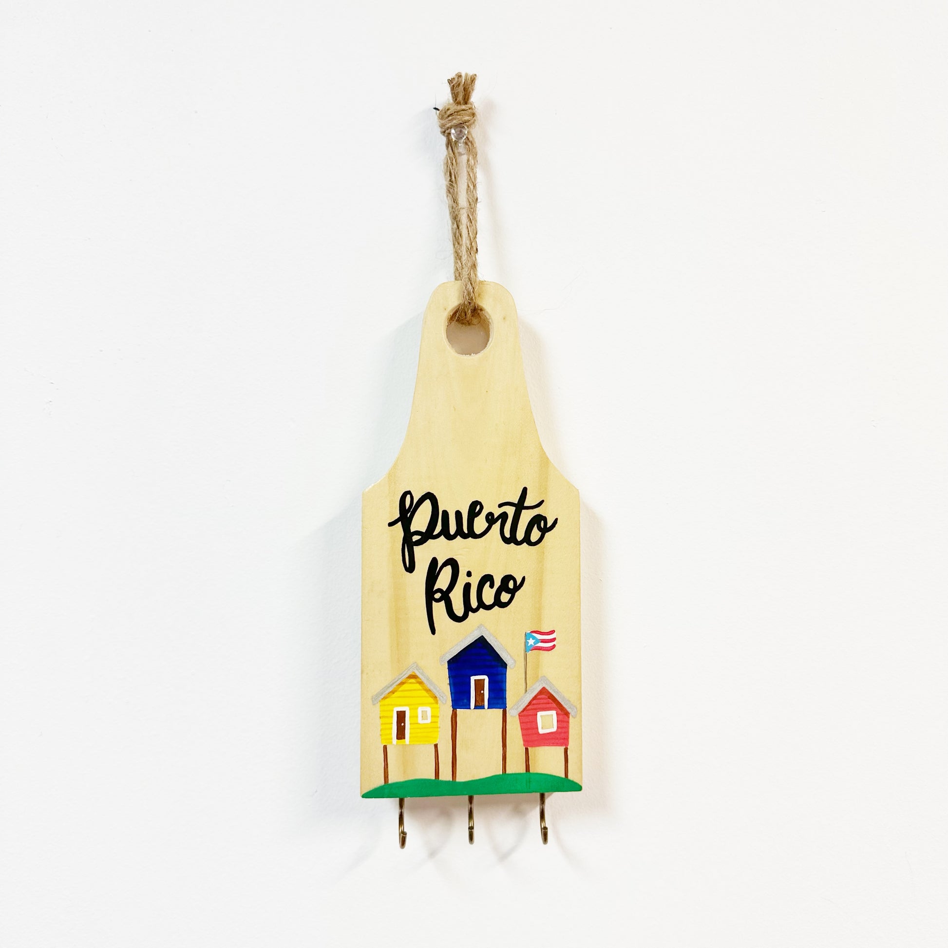Organize your keys with this unique wooden key holder, with a typical hand-painted Jíbaro house print to give it an authentic touch. It is easy to hang and offers a simple way to keep your keys organized.