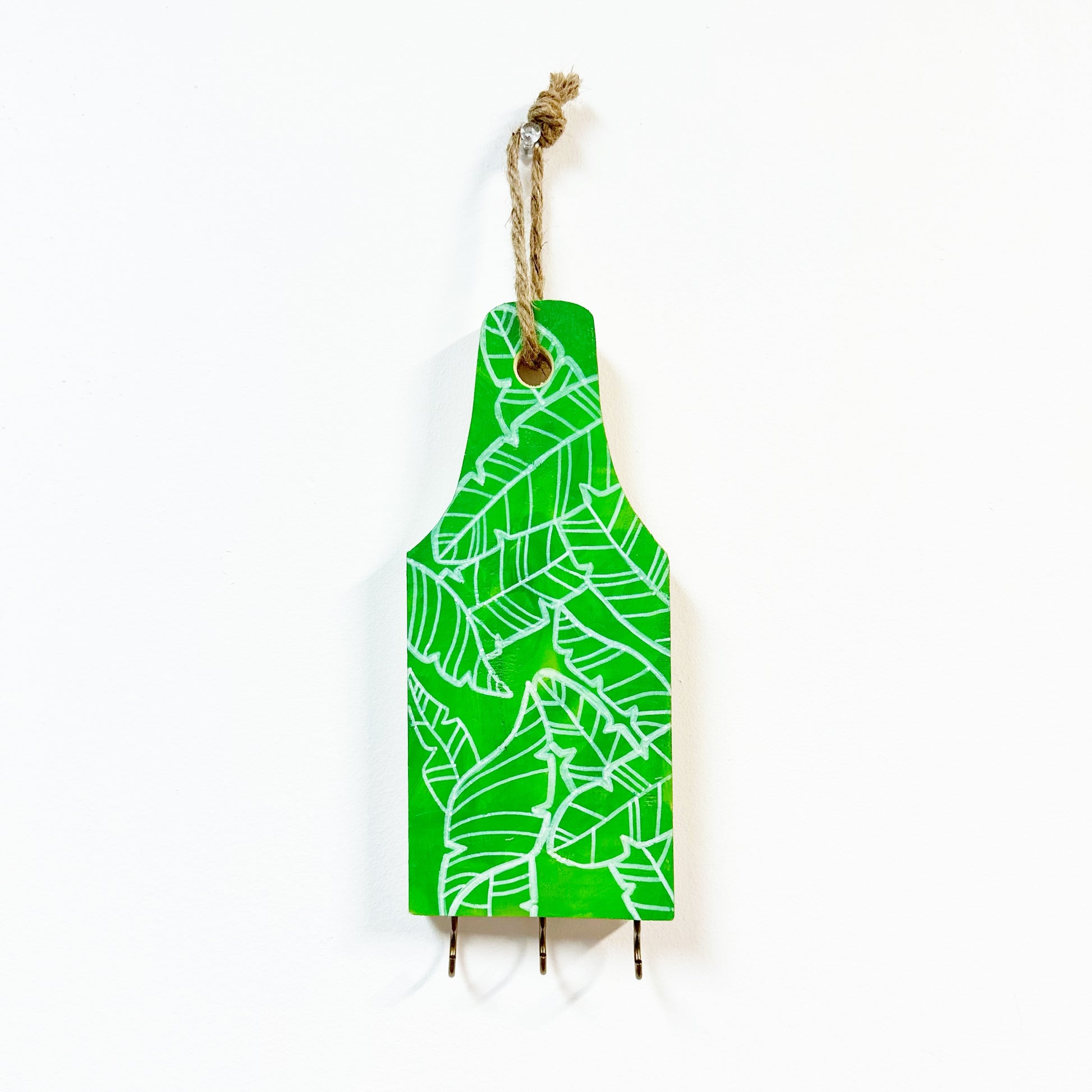 Organize your keys in a practical and decorative way with this handcrafted wooden key holder. It is handcrafted from sturdy wood and comes with an easy-to-hang lanyard. It also has a banana leaf design to decorate your wall. Organize what you need with a touch of Puerto Rican pride!