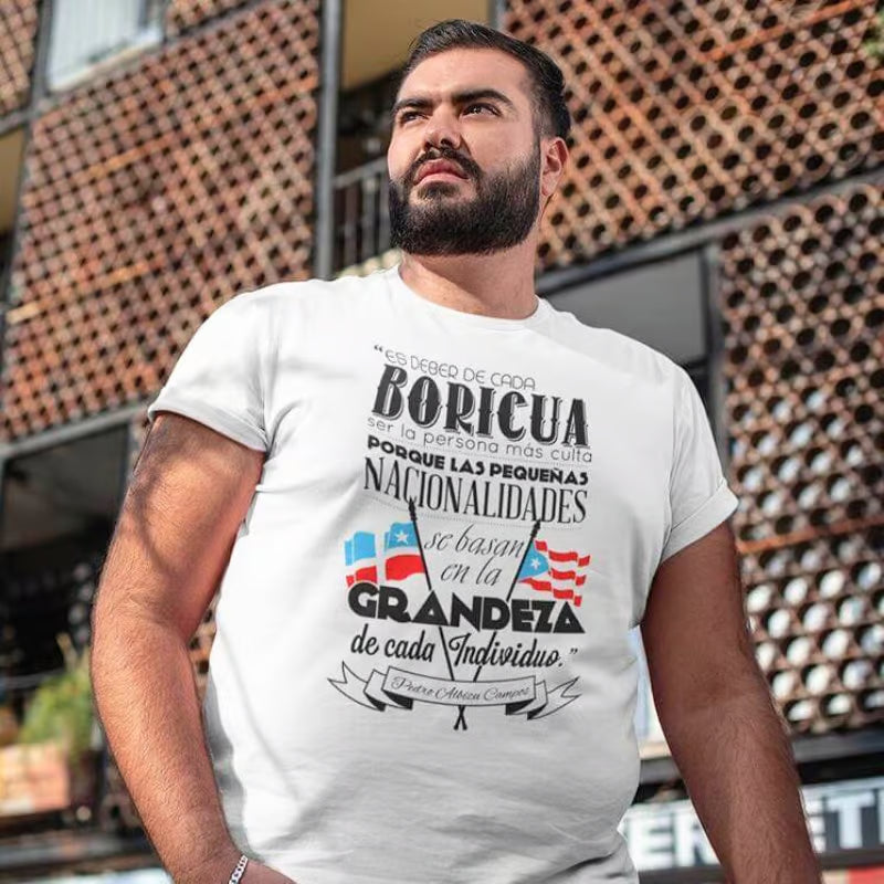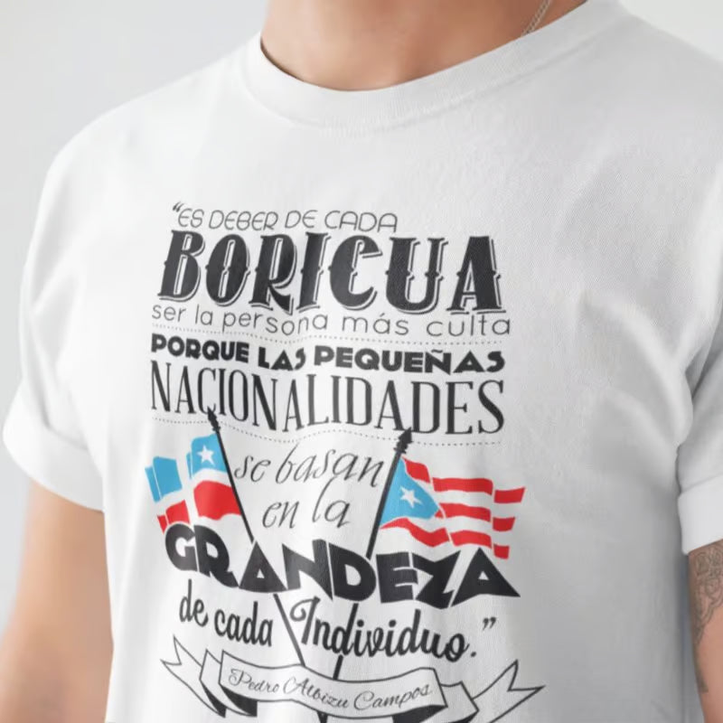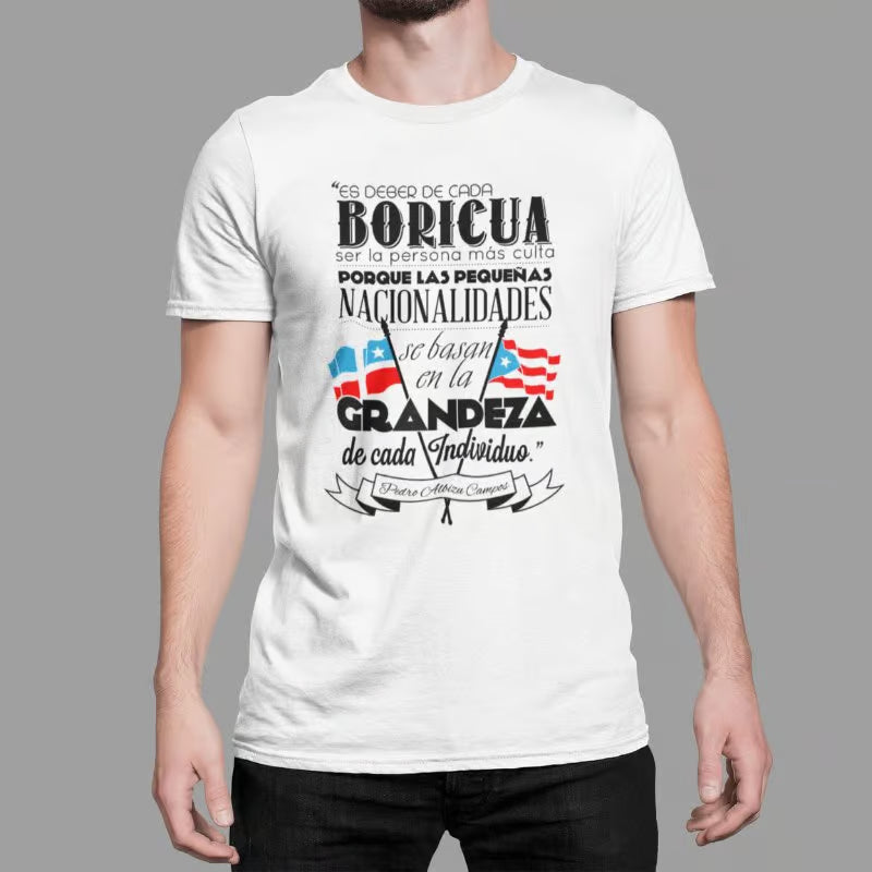 T-shirt for adults with a design inspired by the speeches of Don Pedro Albizu Campos, a great patriotic figure in our Puerto Rican culture. Its style and its meaning will be enough reasons for this to be one of your favorite t-shirts.