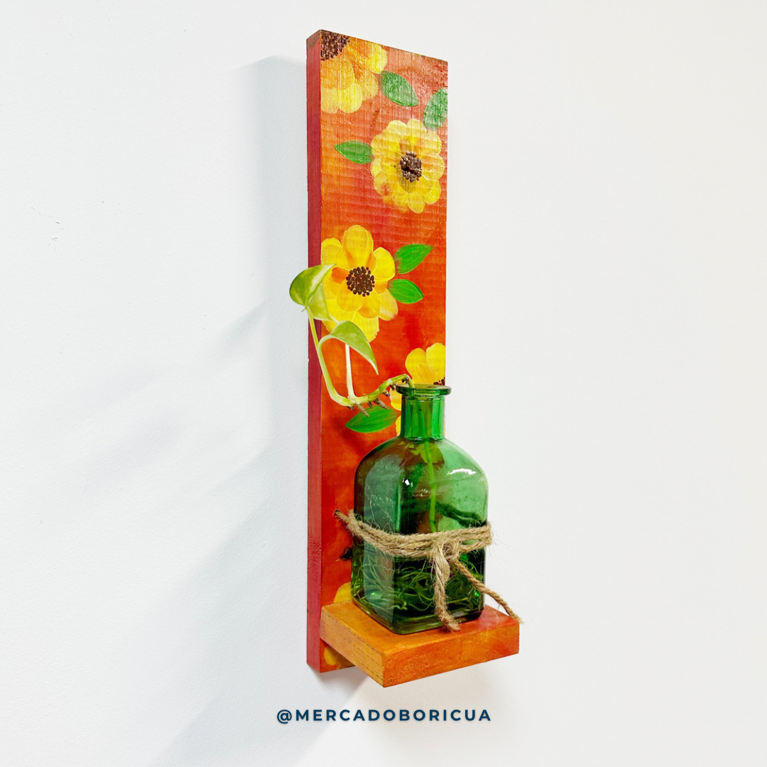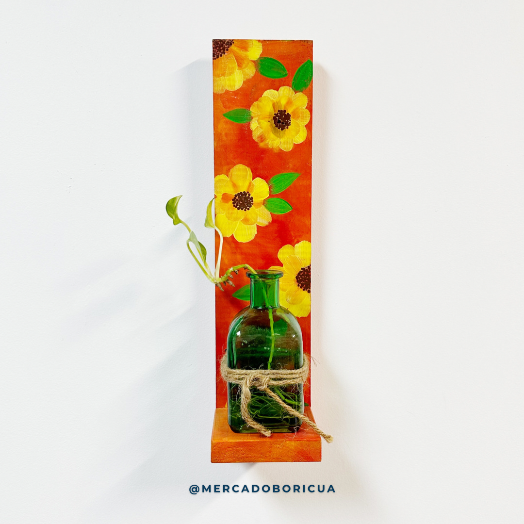 ¡Esta Pieza de Pared Boricua en la Luna combina la frase de Juan Antonio Corretjer con la bandera puertorriqueña y la luna. Incluye una botella de cristal perfecta para propagar tus plantas favoritas! Decora tu espacio con este maravilloso homenaje al orgullo boricua. Pintada a mano, esta placa de madera seguro cautivará a tus invitados. Ubicala en un lugar de interior o exterior y disfruta!