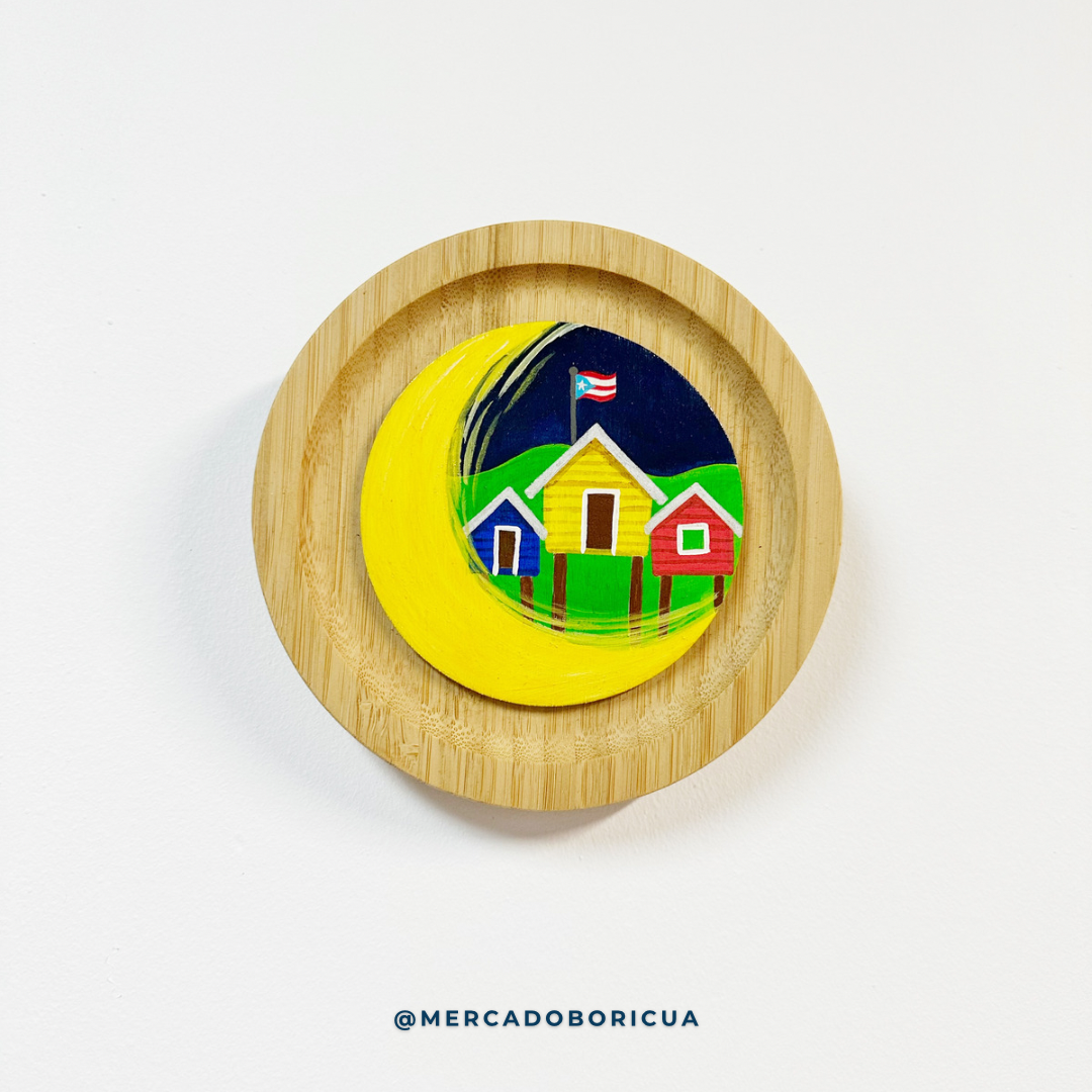 Disfruta de una placa pintada a mano y montada en una base de bambú que te transportará a tu próximo destino: ¡Las pintorescas casitas de campo en la luna! Esta placa traerá un toque de alegría a tu hogar o a la vida de alguien especial, pues ¿quién no quiere algo boricua en la luna?