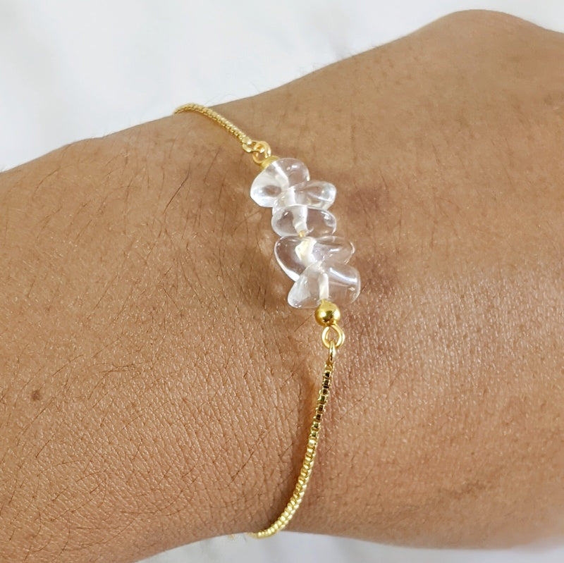 Pulsera de cuarzo para mujer | Pulsera ajustable de piedras semi preciosas | Regalo para ella | Liberte
