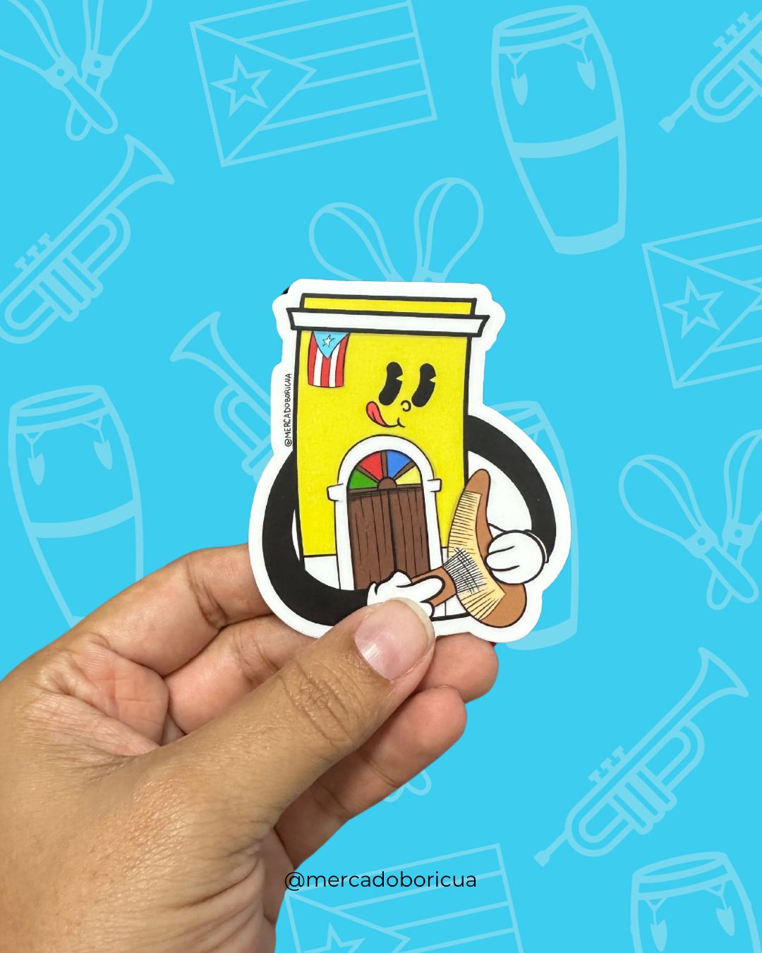 Sticker Casita Viejo San Juan | Güiro y Música Boricua | Vinil Premium